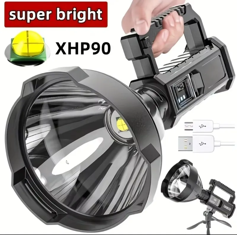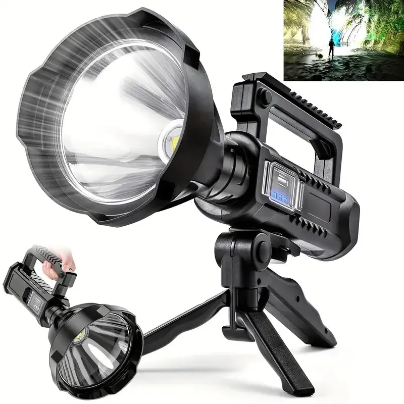 لامب تورش لاد حجم كبير بإضاءة قوية جدا مع حامل للإرتكاز بطارية قوية طويلة الأمد ضوء ساطع طويل المدى يصل إلى 1500م تعبئة بطارية الهواتف المحمولة