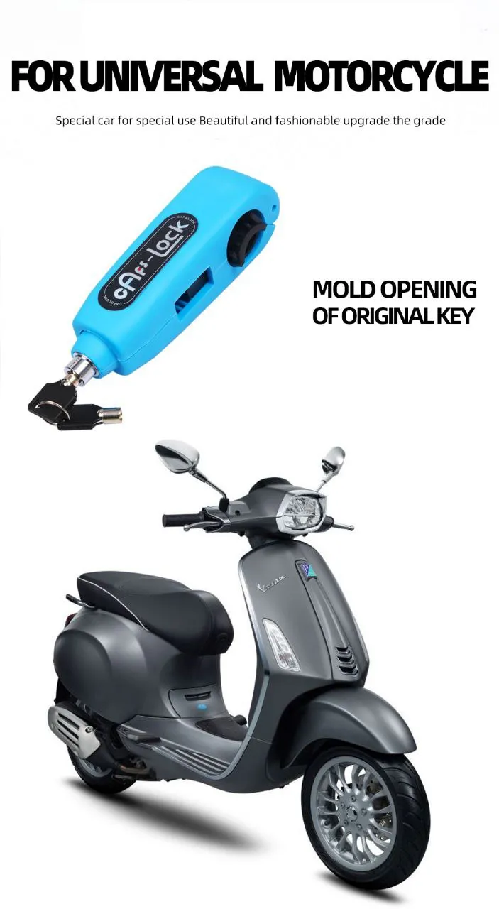 احمِ دراجتك النارية بأفضل قفل حماية! لا تدع اللصوص يفسدون يومك. قفل الحماية العالمي يوفر لك الأمان الذي تحتاجه بفضل تصميمه القوي وسهولة استخدامه. مناسب لجميع أنواع الدراجات النارية والسكوترات